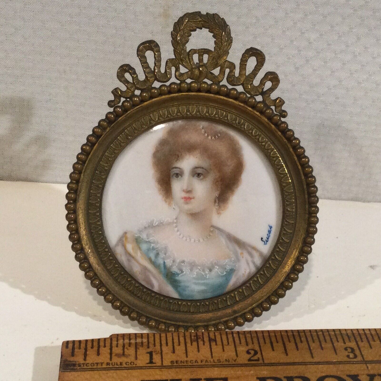 Title (ebay affiliate link): Antique French Miniature Hand painted Portrait signed Lucas in Ormalu Frame