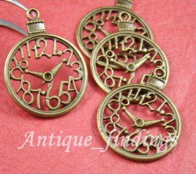 1pcs 40x30mm Antique Bronze Time Clock Charm Pendant