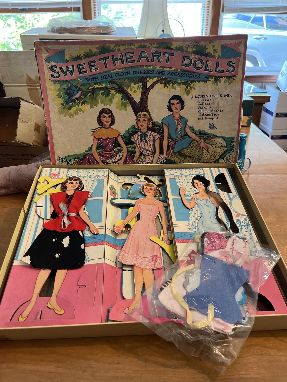 Title (ebay affiliate link):  Vintage  Paper Dolls  3 34Sweetheart Dolls34 with PreCut  Cloth Dresses etc.