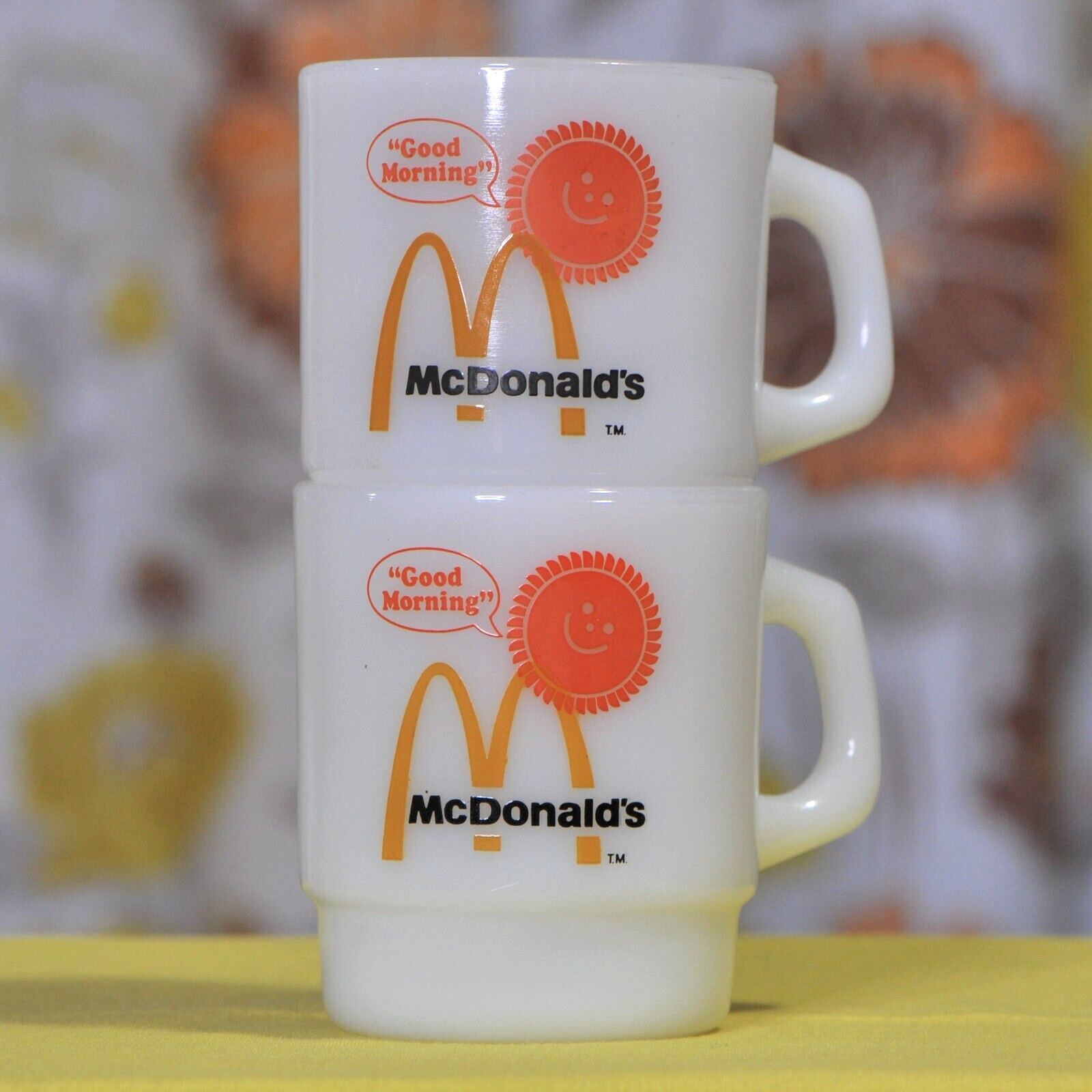 Title (ebay affiliate link): Two Vintage McDonalds Fire King 34Good Morning34 Milk Glass Coffee Mug