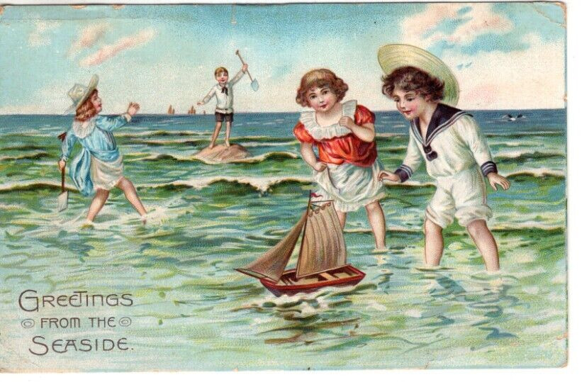 ANTIQUE Postcard RAPHAEL TUCK 34GREETINGS FROM THE SEASIDE34
