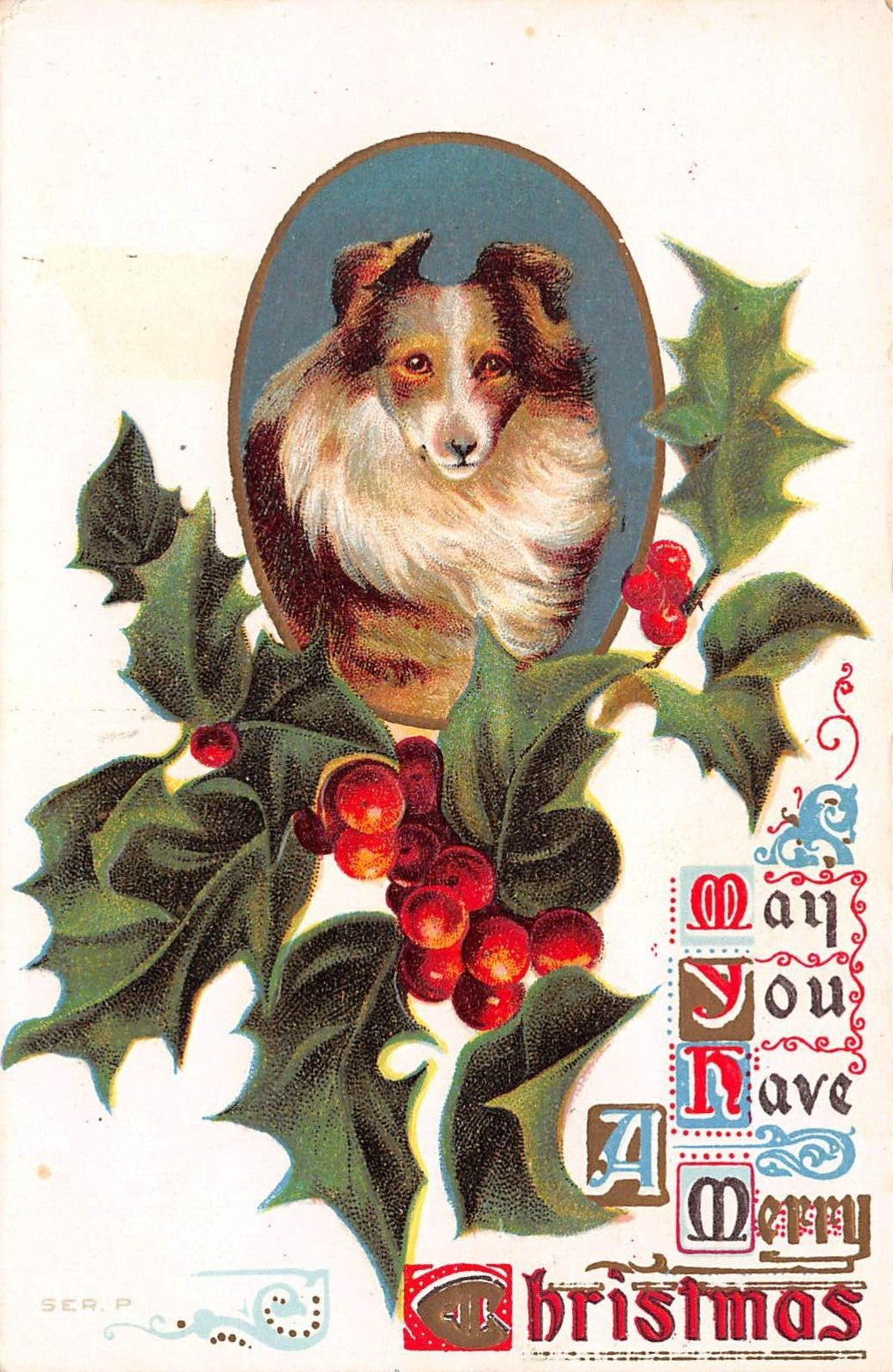 Title (ebay affiliate link): C8986 34May you have a Merry Christmas34 Collie and Holly Antique Postcard Emb.