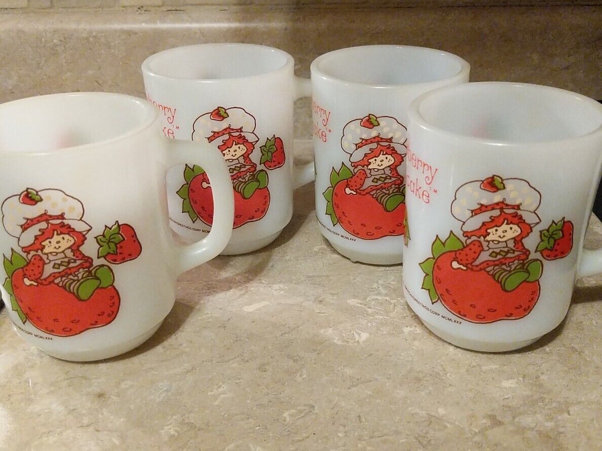 Title (ebay affiliate link): 4 Vintage 1980 Anchor Hocking Strawberry Shortcake Milk Glass Mugs.