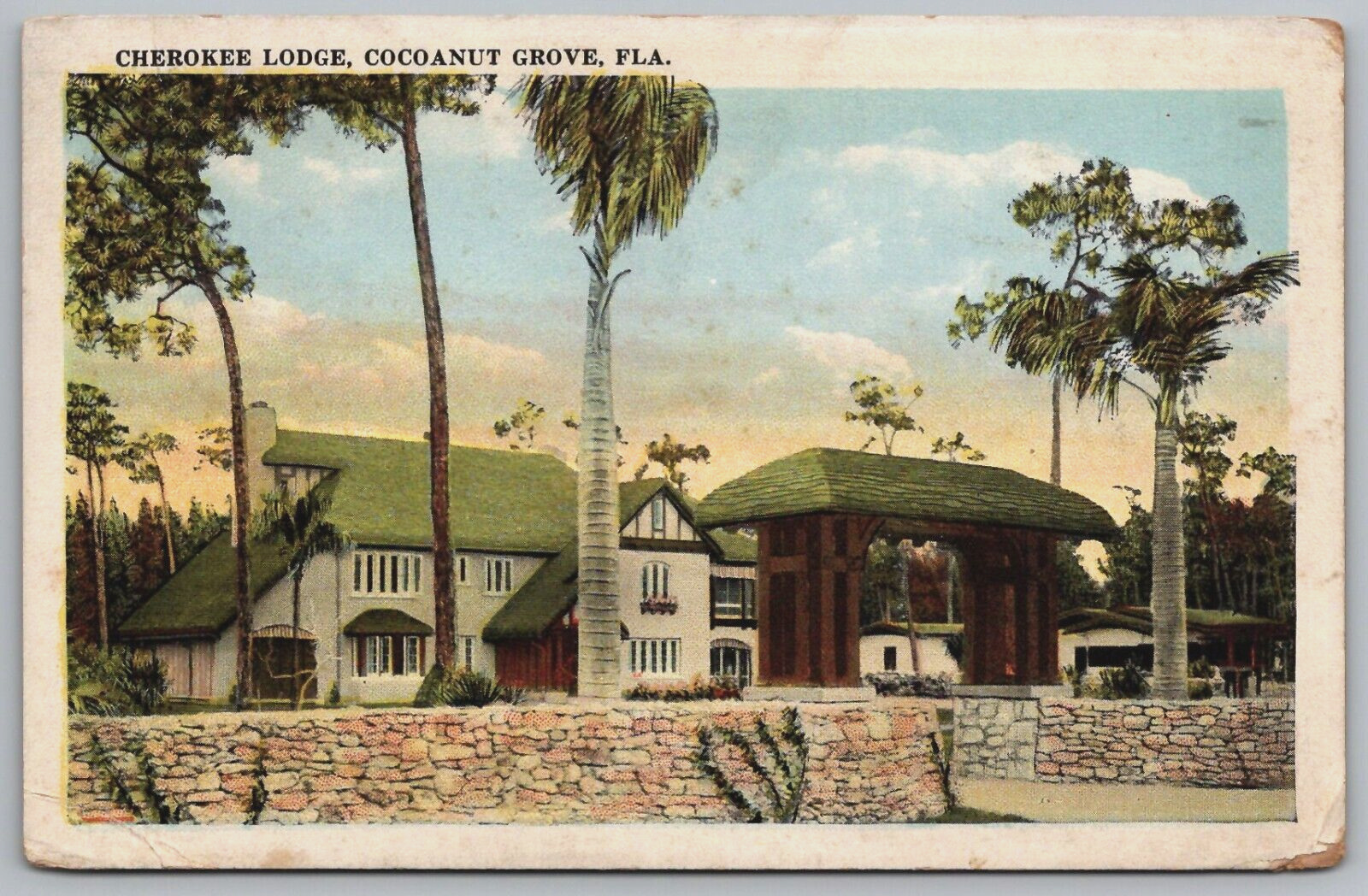 Antique Postcard Cherokee Lodge Cocoanut Grove Miami Florida FL