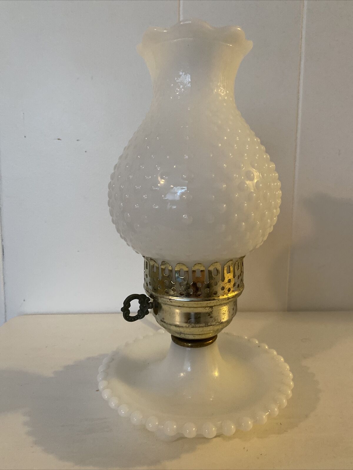 Vintage Milk Glass HOBNAIL HURRICANE LAMP w/ SHADEworking