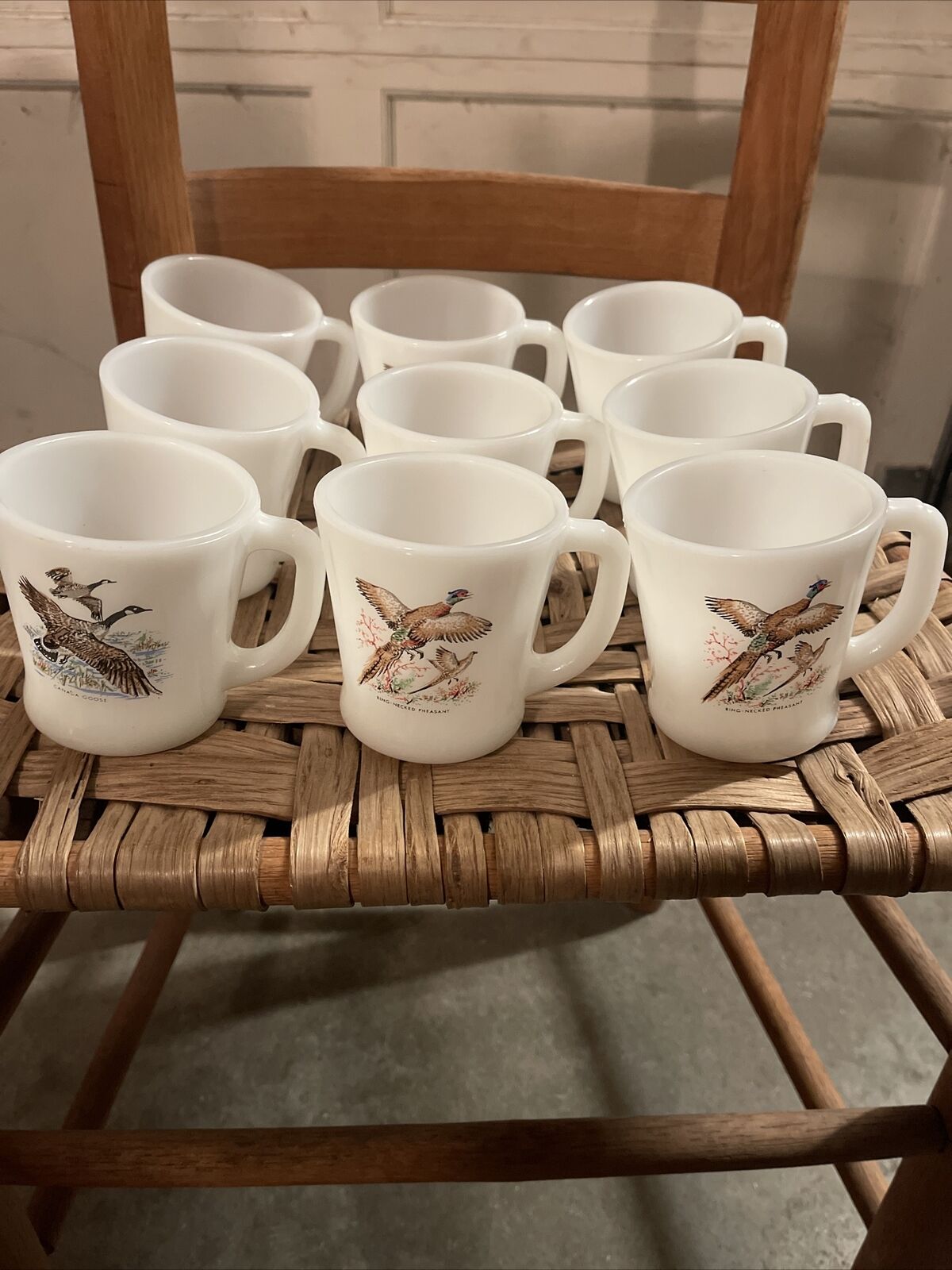 9 Vintage Fire King Oven Ware Pheasant Glass Coffee Mug Cups USA