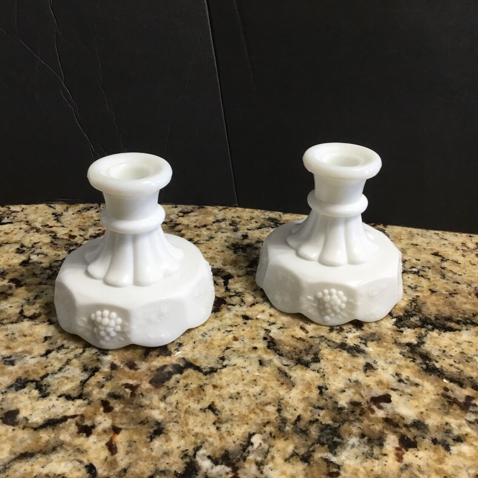 Title (ebay affiliate link): Milk Glass 34Paneled Grapes34 Octagonal Candle Holder Vintage Pair Westmoreland