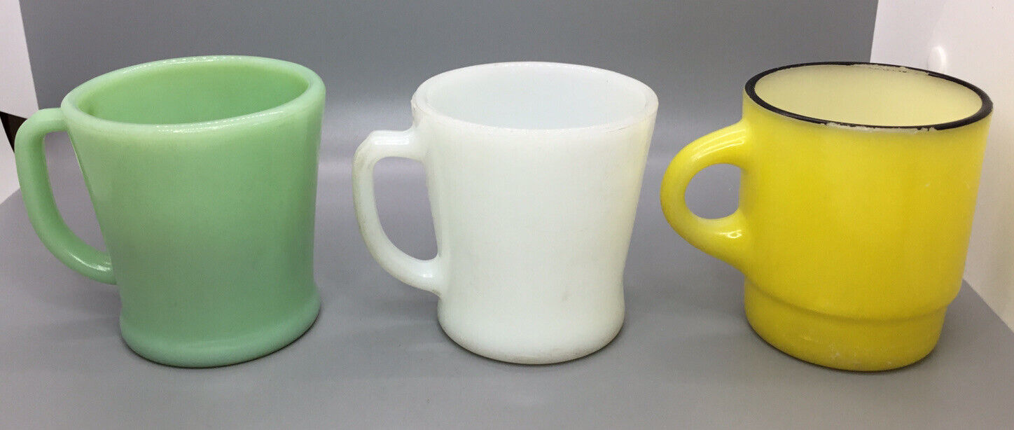 Vintage Fire King Mugs Jadite Yellow White Set Of 3