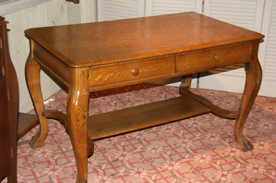 ANTIQUE LIBRARY TABLE RESTORED QTR SAWN OAK