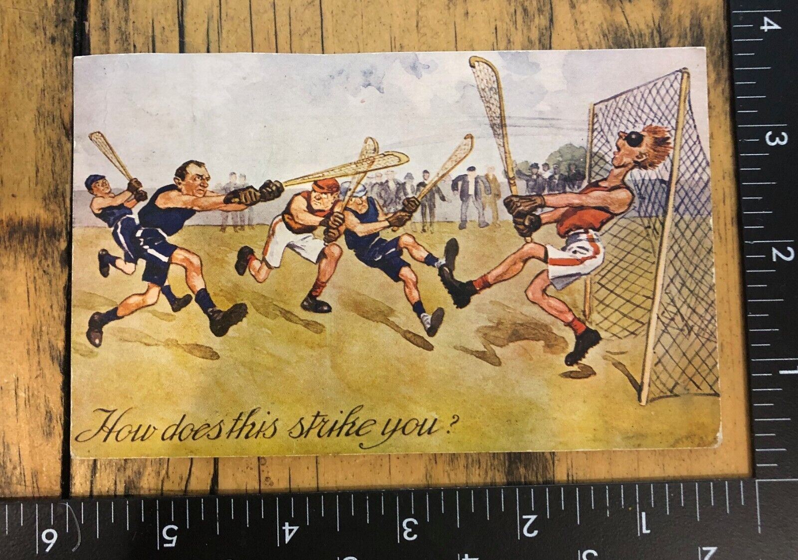 Title (ebay affiliate link): Vintage Antique Color LACROSSE Sports Postcard Lacrosse How does that Strike You