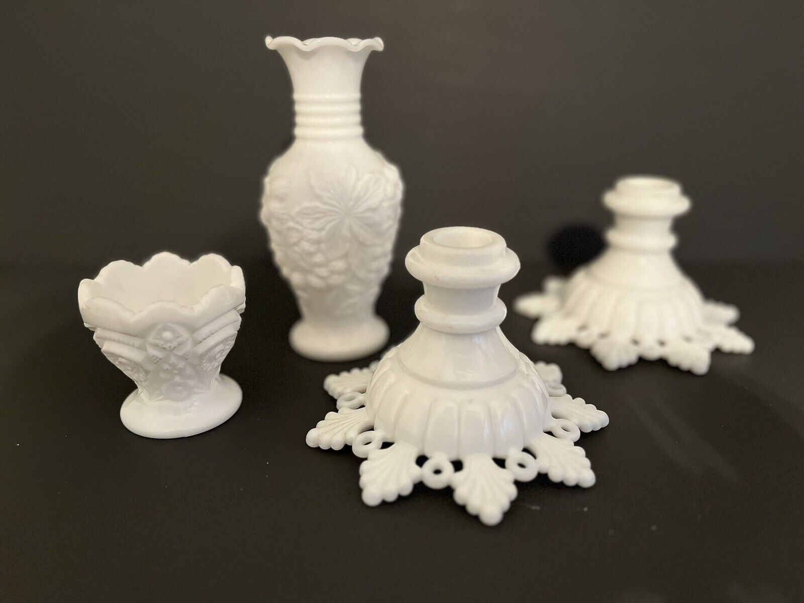 Vintage Milk Glass Candlesticks Vases Lot of 4