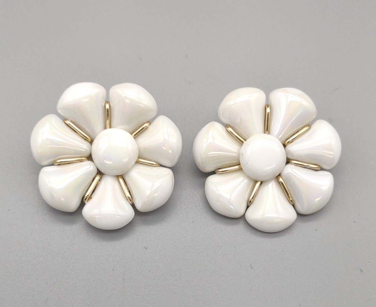 Vintage Western Germany White Milk Glass Flower Clip On Earrings O97