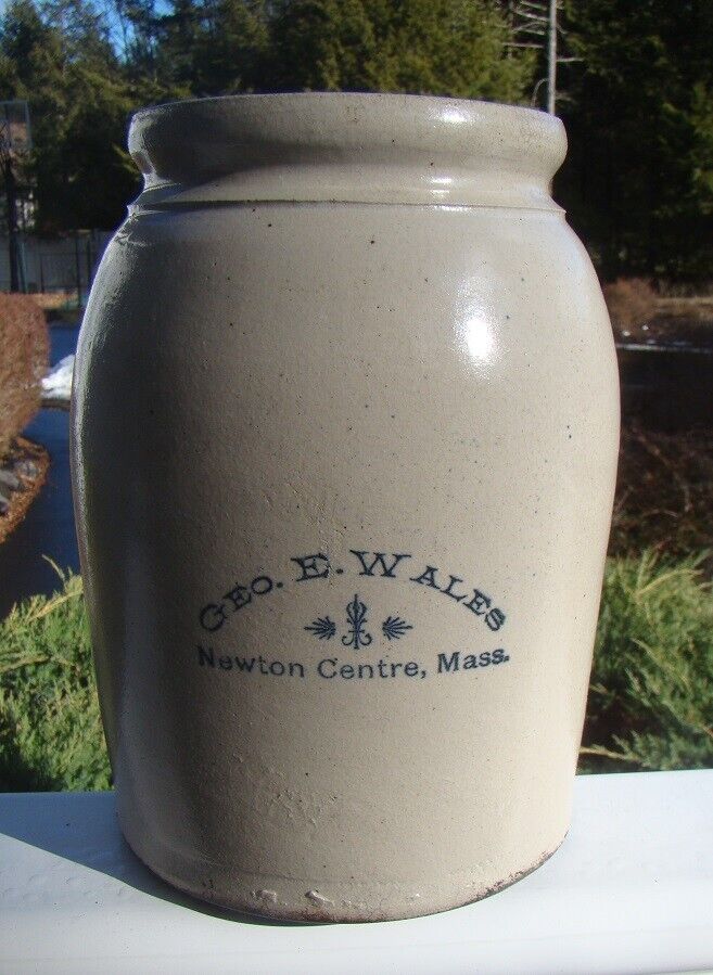 Title (ebay affiliate link): Antique GEO. E. WALES NEWTON CENTRE MASS. Salt Glazed Stoneware Crock