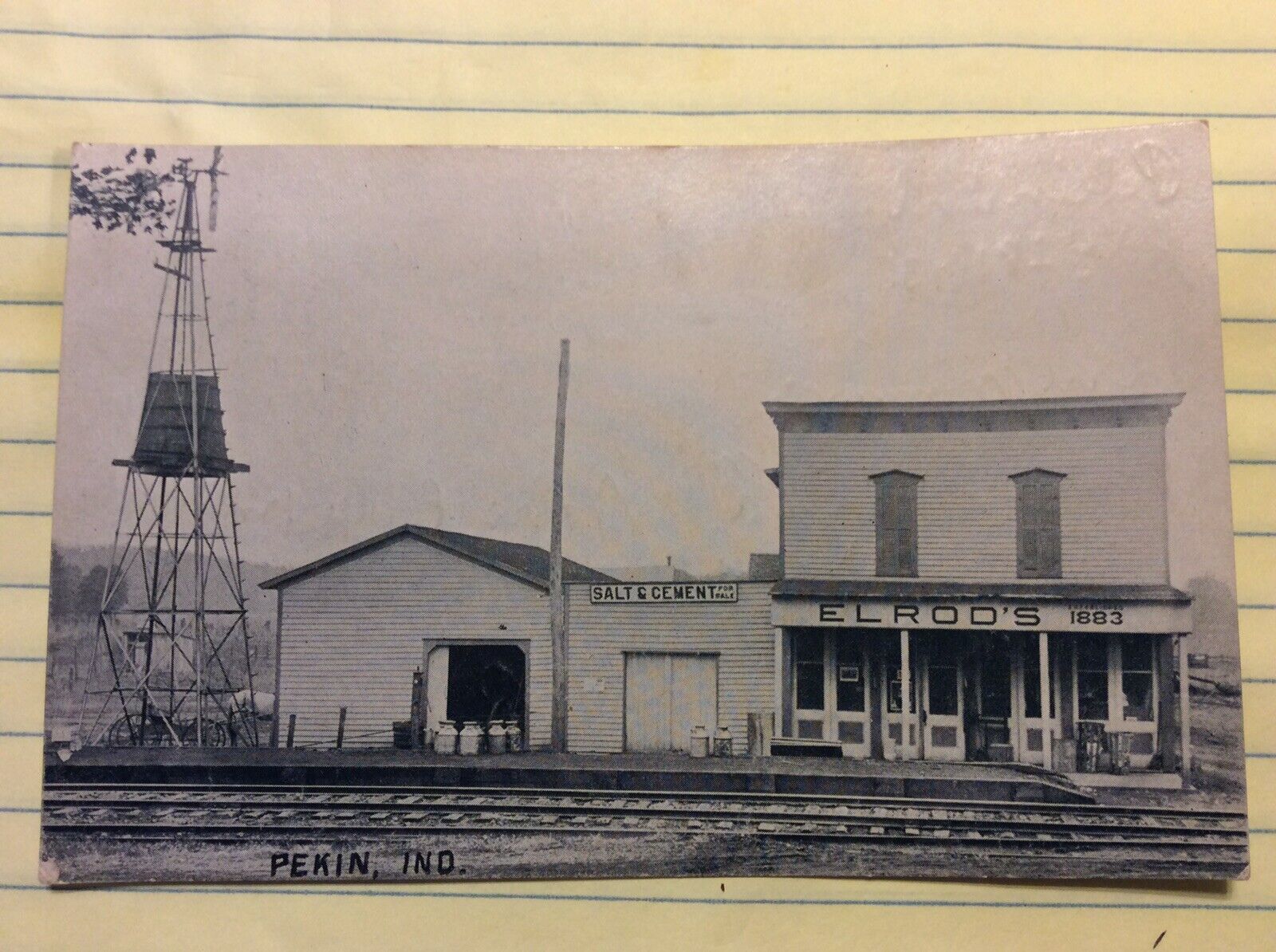 Pekin Indiana Railroad Stop Elrod’s Salt Cement Antique Postcard 1913 Auburn