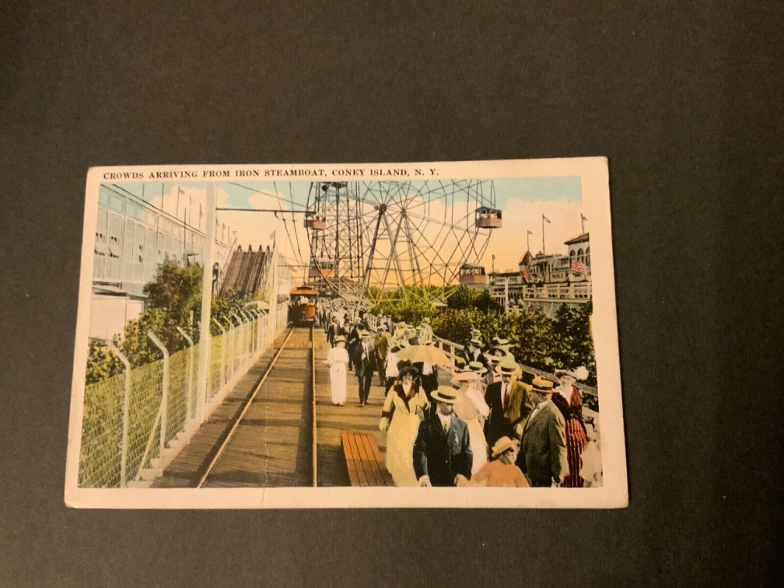 Coney Island New YorkSteeplechase Park Crowds Ferris Wheel Antique Postcard