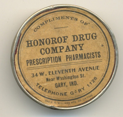 Early pocket mirror from Honorof Drug Co in Gary,Ind