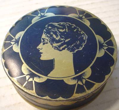 DECO LADY HEAD TYPWRITER RIBBON TIN SILVER MEDAL BRAND