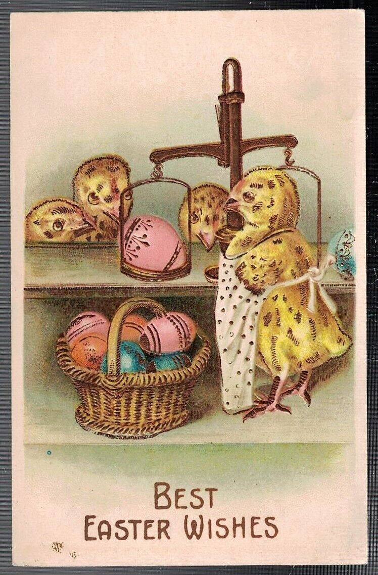 ANTIQUE 19071910 BEST EASTER WISHES BABY CHICKS WEIGH COLORED EGGS POSTCARD