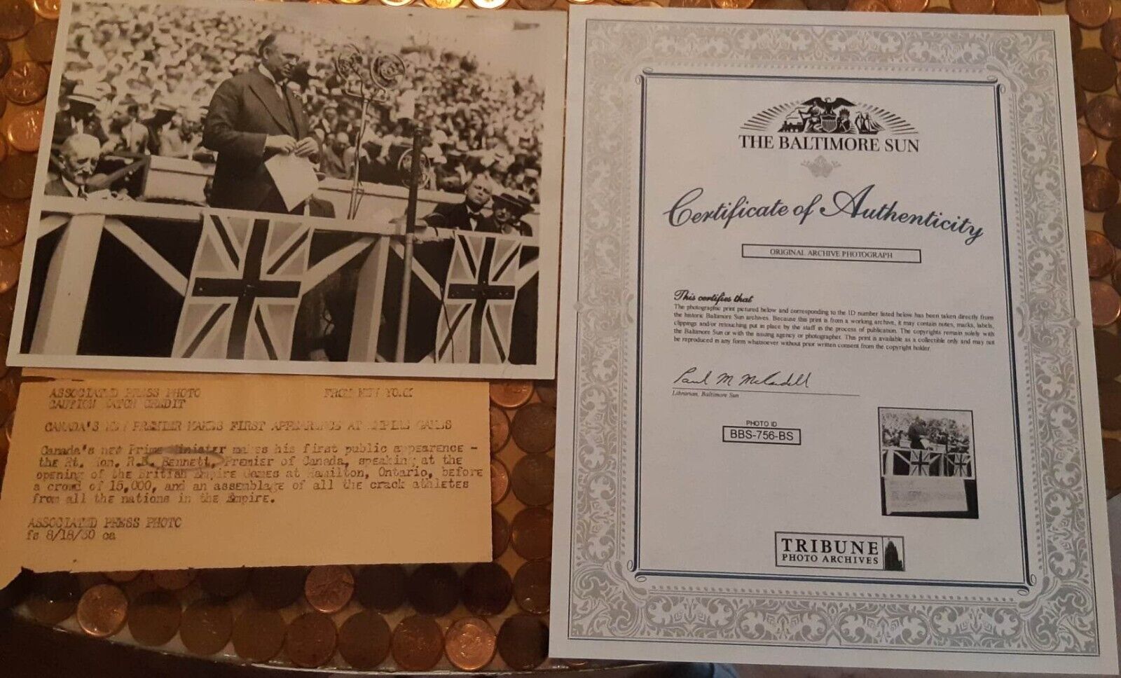 Title (ebay affiliate link): 1930 Associated Press Photo Prime Minister R.B. Bennett With COA