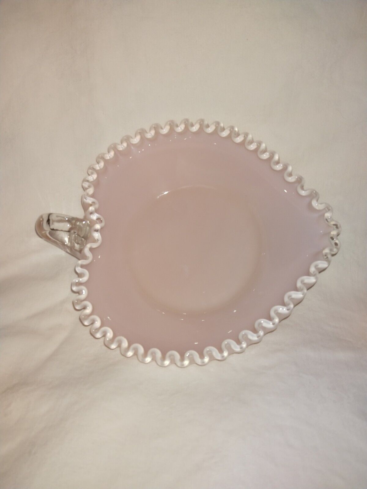 PINK MILK GLASS SILVERCREST HEART SHAPED DISH WITH HANDLE
