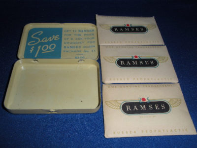 Vintage Ramses advertising condom tin + 3 CONDOMS rare