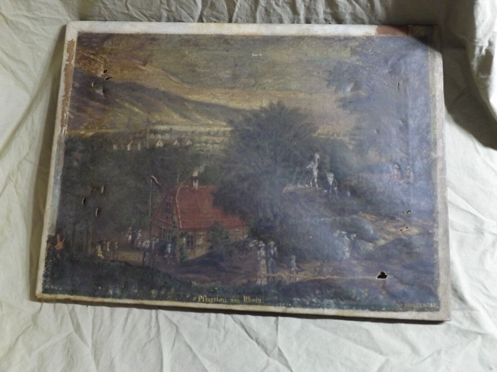 Title (ebay affiliate link): Antique 19th C Original Oil Painting on Canvas PFINGSLEU am RHEIN Wm Schlechter