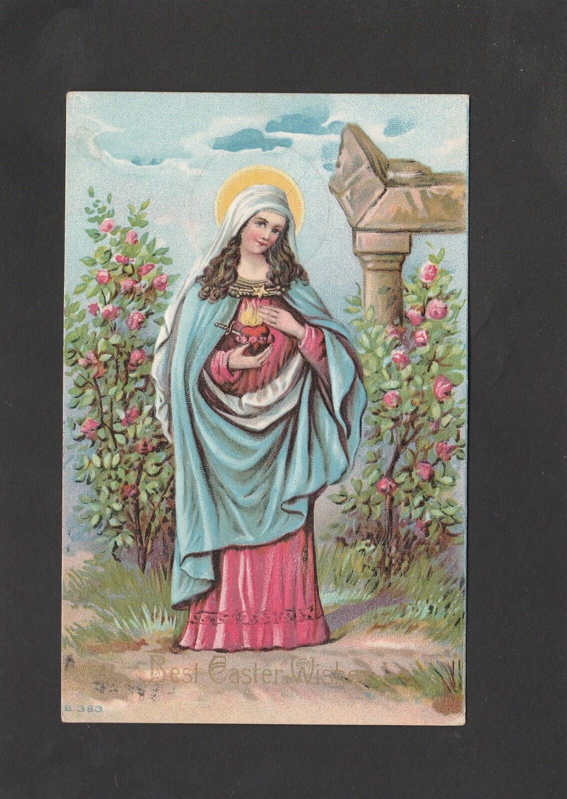 Best Easter Wishes Mary Holding A Sacred Heart Vintage Embossed Postcard