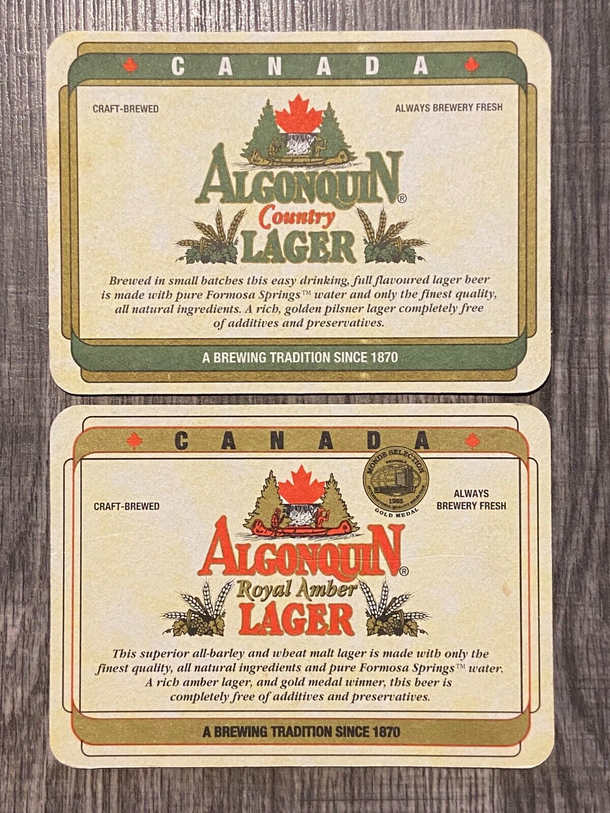 2 ALGONQUIN BREWERY LAGER BEER COASTERS FORMOSA CANADA