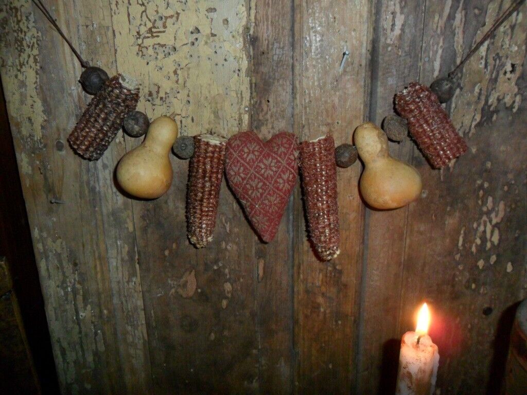 Title (ebay affiliate link): Primitive Heart Gourd Garland w/ Dried Red Cobs Valentine Decor 1834 long