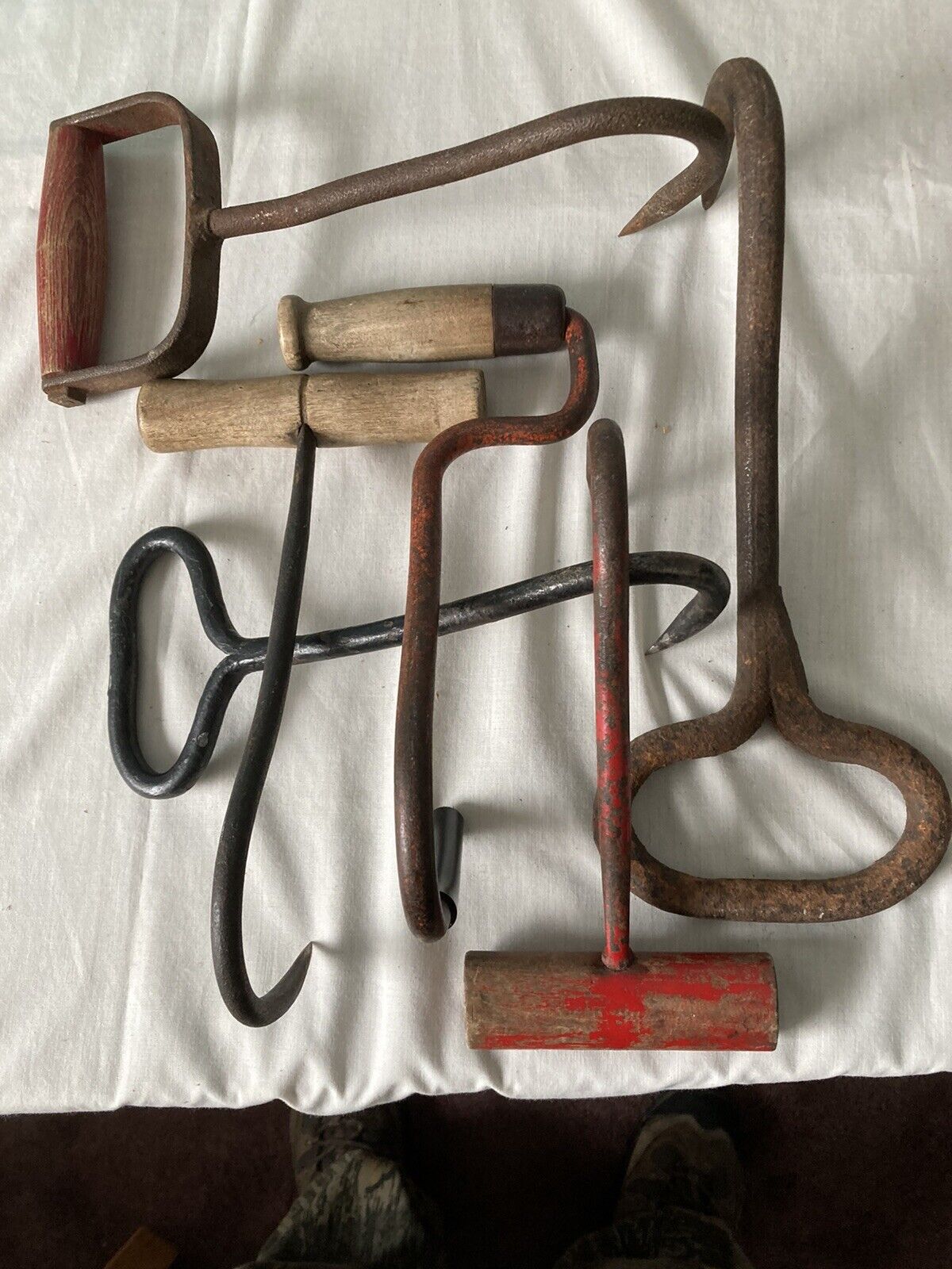 Title (ebay affiliate link): LOT OF 6 VINTAGE HAY HOOKSUSED FARM TOOL2 HAND FORGED  1 NEWARK N.J. MARK
