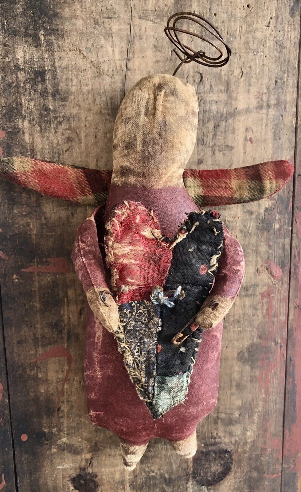 Title (ebay affiliate link): Primitive Folkart Small AngelVintage Quilt HeartShelf Sitter DollOrnament