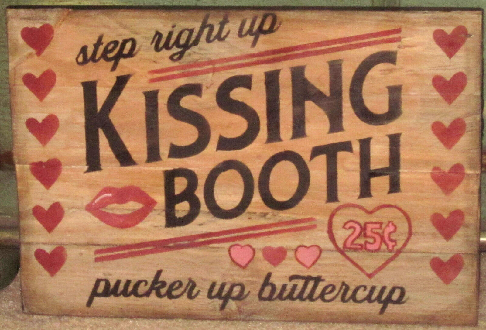 Title (ebay affiliate link): PRIMITIVE HP FOLK ART VALENTINE 34KISSING BOOTH34 SIGN RECLAIMED WOOD