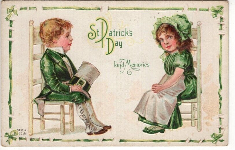ANTIQUE EMBOSSED ST. PATRICKS DAY Postcard 34FOND MEMORIES34
