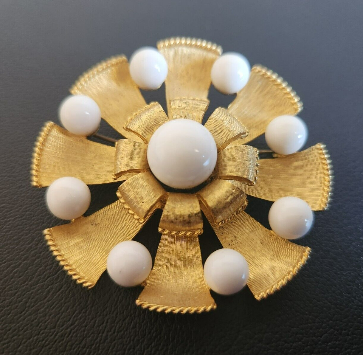 Title (ebay affiliate link): Vintage Brooch Pin Milk White Glass Beads Flower Gold Tone Tiered 751