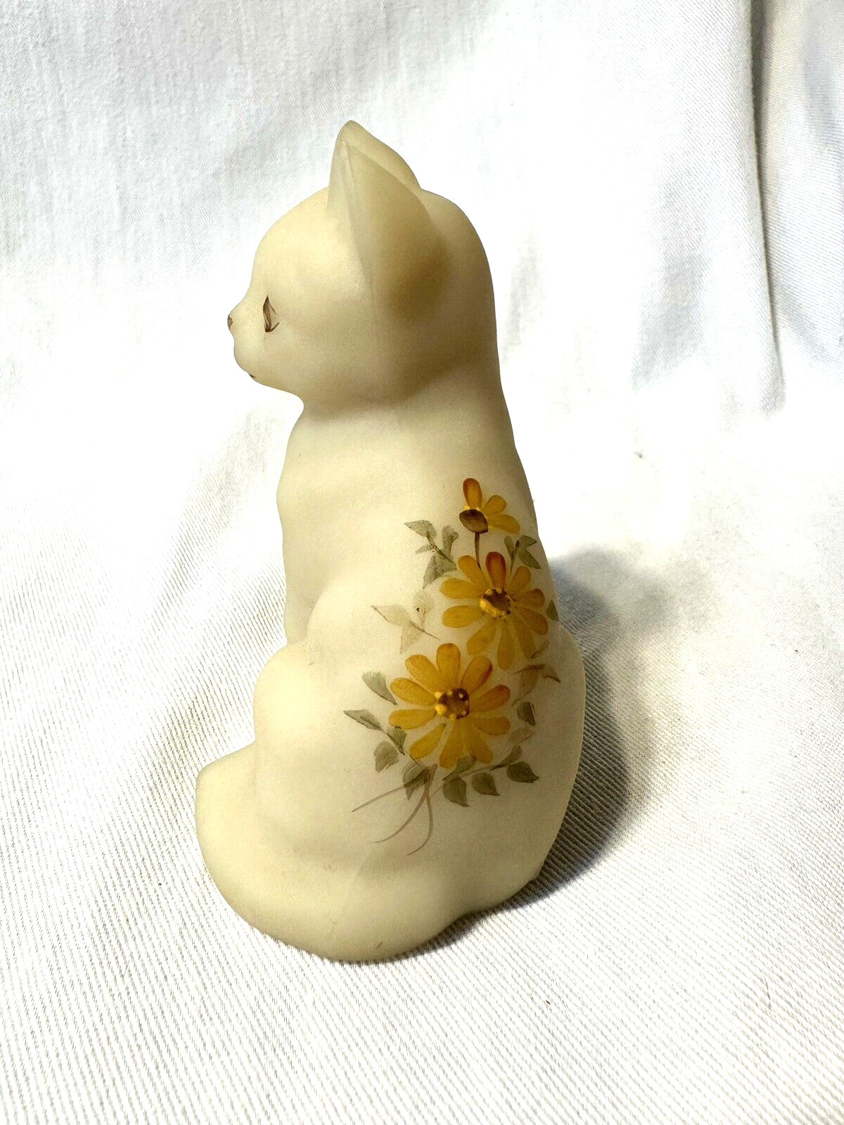Vintage Fenton Milk Glass Hand Painted Sitting Kitten Cat Figurine Artist Signed