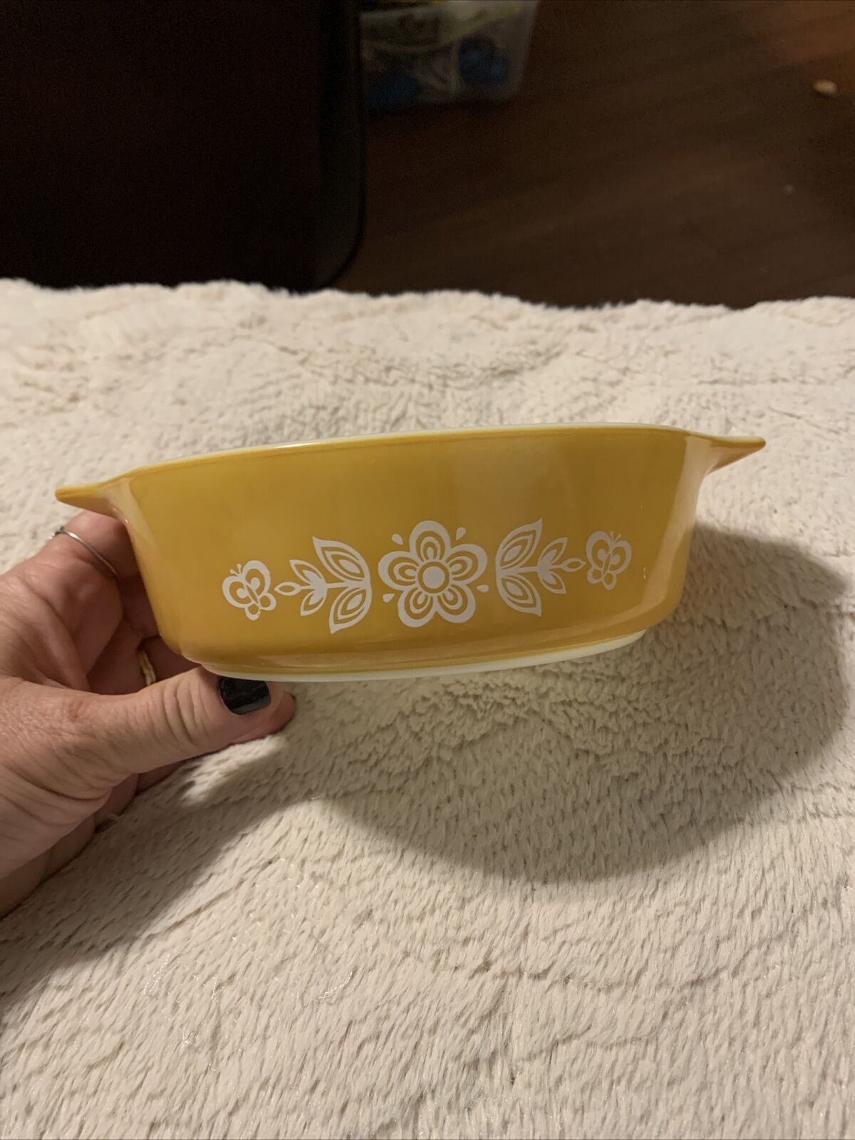Title (ebay affiliate link): Vintage 1970s PYREX Butterfly Gold 471 1 pt Cinderella Casserole Dish