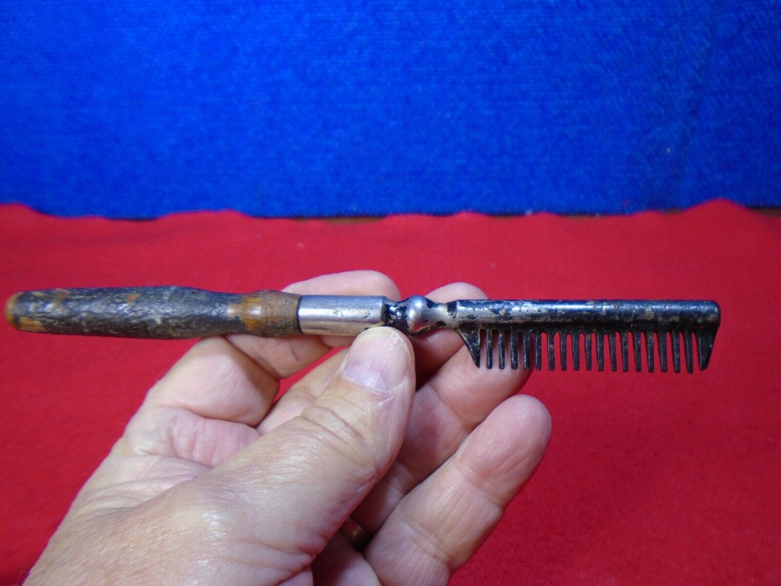 ANTIQUE METAL WOOD HAIR COMB. SY