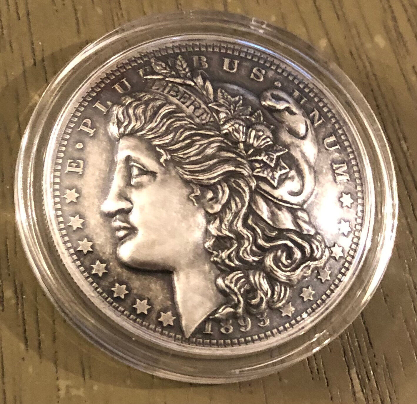 Title (ebay affiliate link): 1 oz Antique Domed American Legacy Morgan Dollar Silver Round Capsule w/ CoA