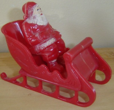 Title (ebay affiliate link): VINTAGE CELLULOID HARD PLASTIC CHRISTMAS SANTA & SLEIGH
