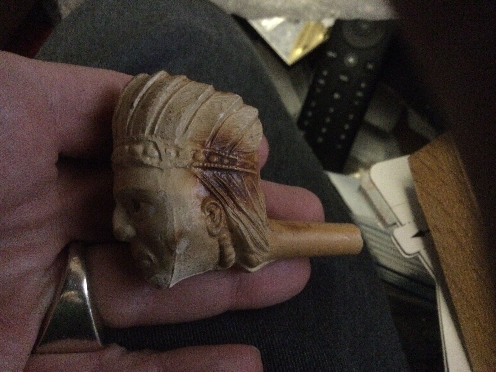 Title (ebay affiliate link): antique clay Native American Indian molded pipe damaged no reserve