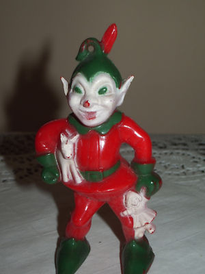 Sweet Vintage 1950s Christmas Elf Holding Doll & Puppy