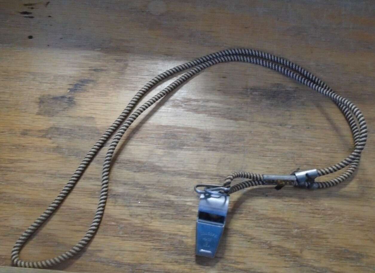 Vintage COL SOFF WHISTLE With Lanyard Made USA Silver tone Metal