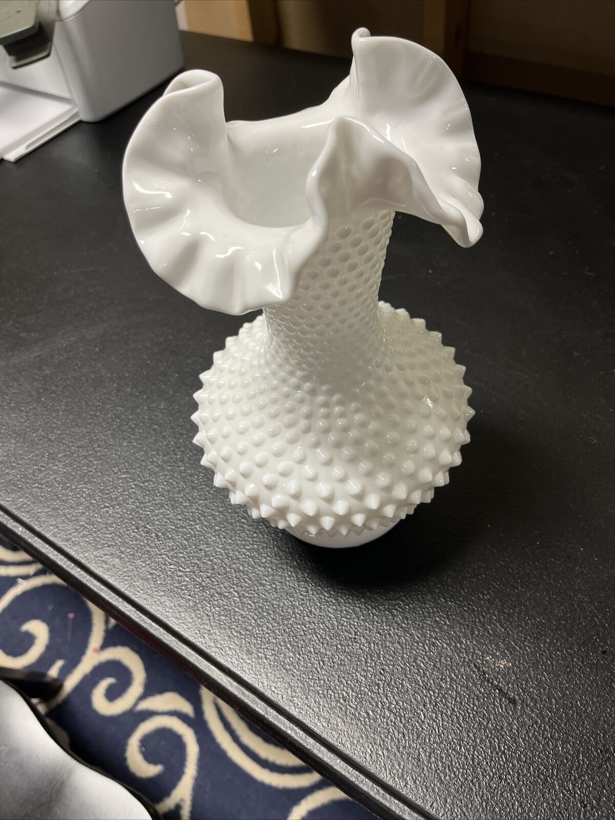 Title (ebay affiliate link): vintage fenton white milk glass hobnail vase ruffled edge 10 3/434