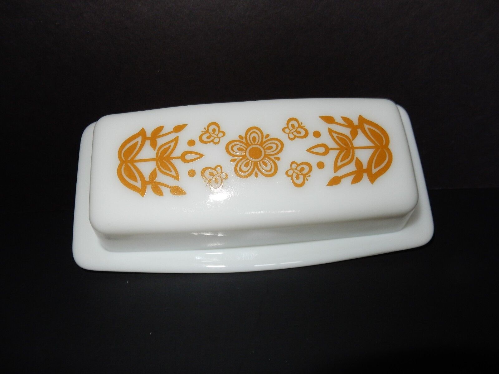 Vintage Pyrex 72B Butter Dish Butterfly Gold Flowers With Lid Great Condition