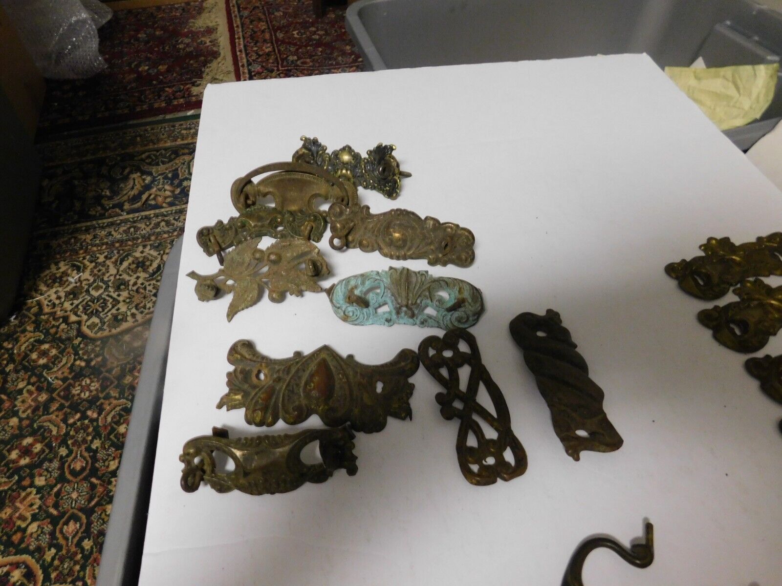 Title (ebay affiliate link): Vintage Brass 11 Drawer Pulls Cabinet Handle plates Old Furniture Hardware