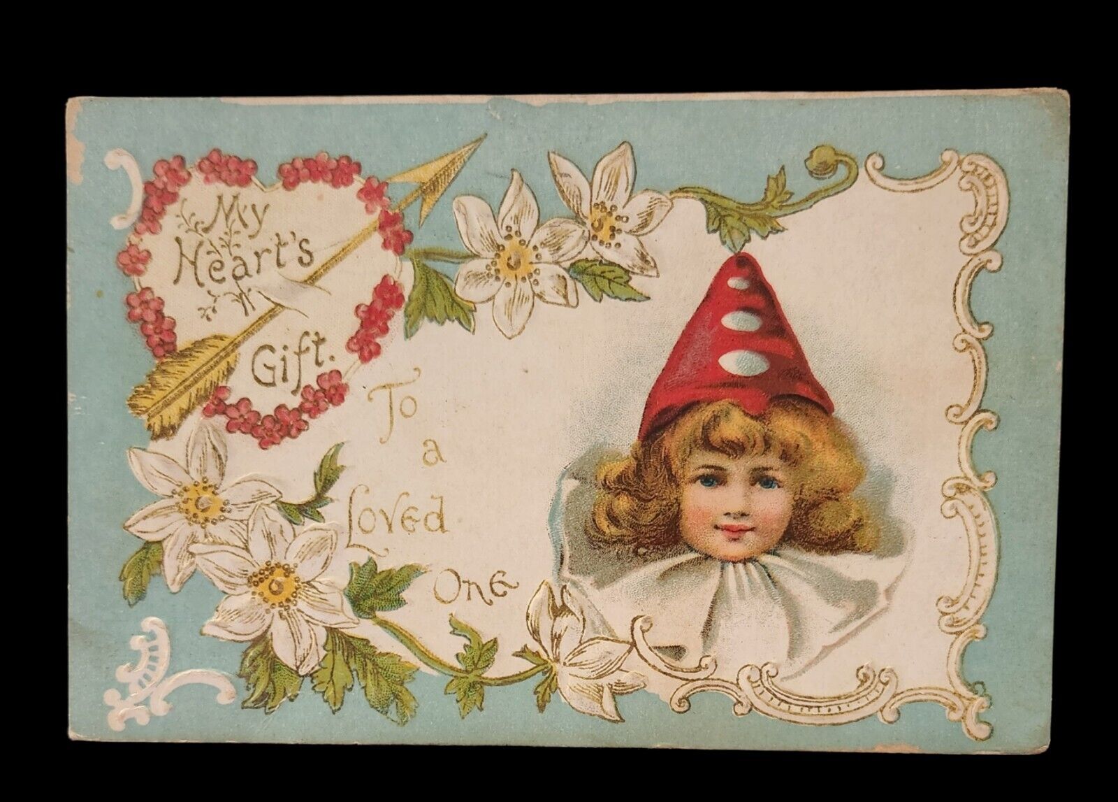 Vintage Antique Early 1900s Valentines Day Postcard Arrow Little Girl Embossed
