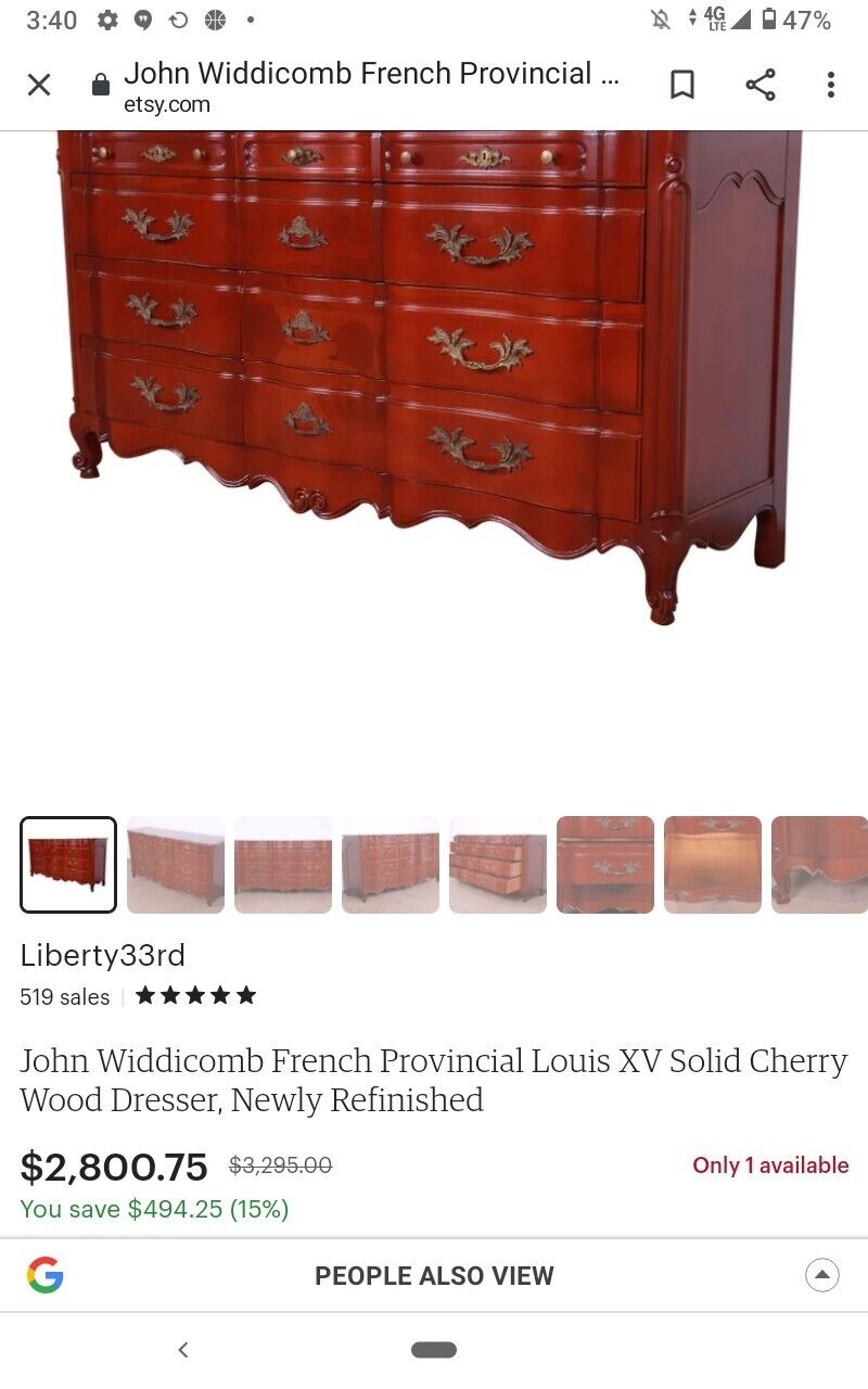 Title (ebay affiliate link): John Widdicomb French Provincial Louis XV Solid Cherry Wood Dresser Refinished