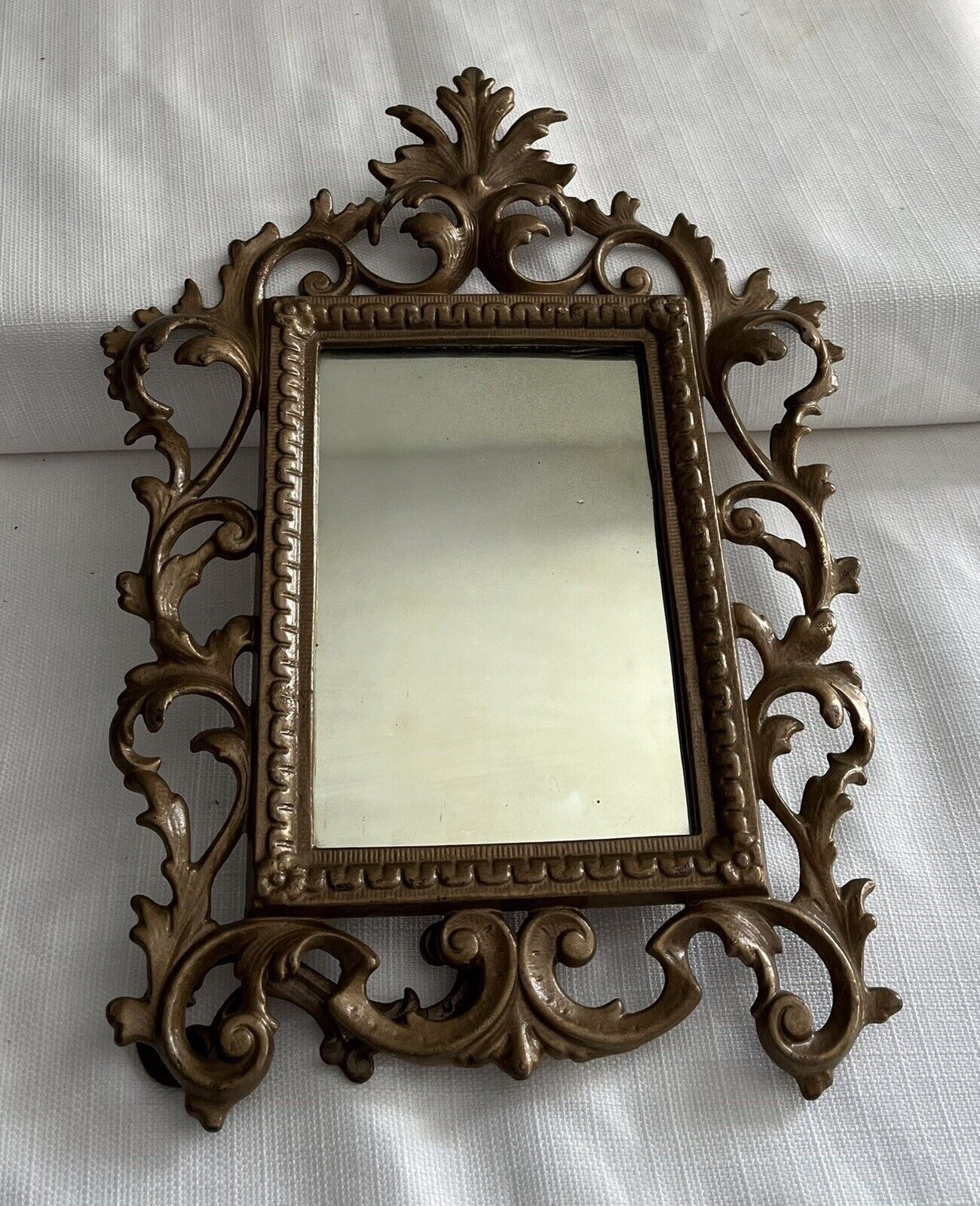Vintage Heavy Copper Gold Tone Iron Frame/Mirror Elaborate Filigree Style