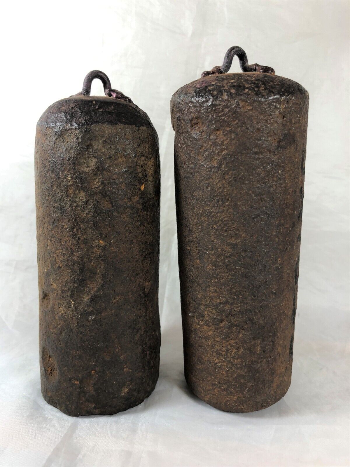 Antique Grandfather Grandfathers / Tall Case Clock Parts Pair of Iron Weights