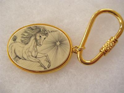 VINTAGE " SCRIMSHAW " UNICORN KEYCHAIN-BY BARLOW